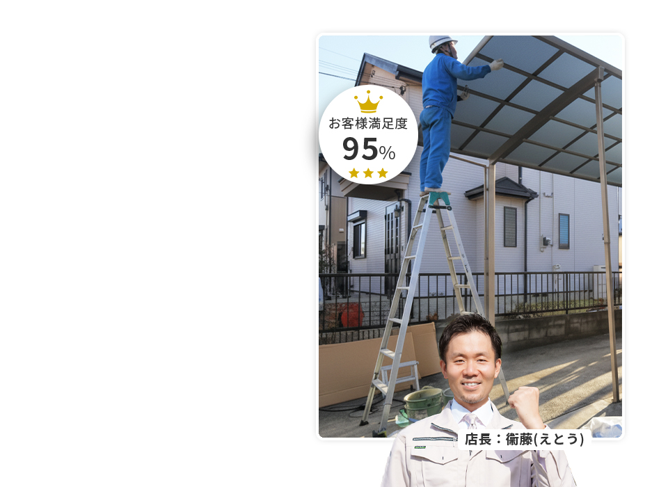 メッセージ:カーポートの劣化は放置すると被害が大きくなることが少なくありません。グラつきを我慢して使い続けて支柱の腐食が進む、強風で屋根材(ポリカ)が割れて飛散する、倒れかけて車や外壁を傷つける——そんなトラブルも実際に起きています。私たちは経験豊富な職人と連携し、現地で状態を確認したうえで、安全・確実な撤去を行います。