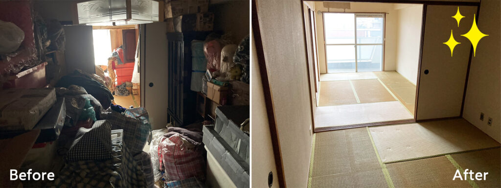物が溢れかえっている状態から平均して1日以内で綺麗に片付け致します!(2日以上かかる場合は事前にお伝えします)